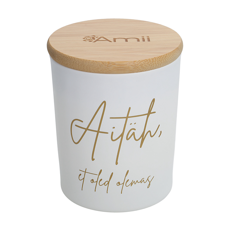 The scented candle of Passion is quite tart and pleasantly fruity. Light, fresh and airy. The candle is covered by a bamboo lid.