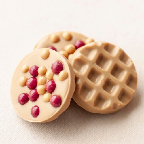 Minichoks for those who like natural and real strawberries. Lots of strawberries! White chocolate is also added, which gives it a natural pink color.