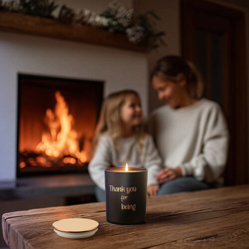 The trendy matte black glass is complemented by a rose gold lid and laser-cut sticker.