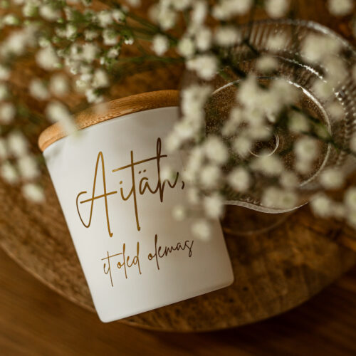 The scented candle of Passion is quite tart and pleasantly fruity. Light, fresh and airy. The candle is covered by a bamboo lid.