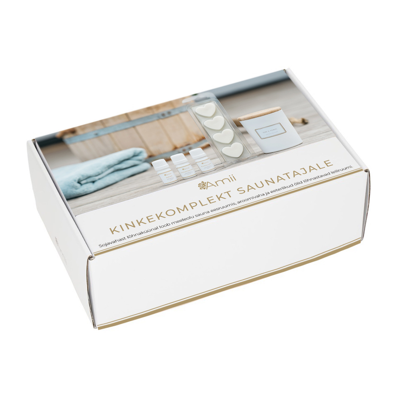 A scented candle made of soy wax creates a mood in the anteroom of the sauna, wax melt and essential oils scent the steam room.